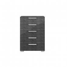 Understated luxury is the hallmark of the Sarah Modern 6-Piece Rhombus Upholstered Bedroom Set. Handcrafted in Italy, this opulent collection showcases a splendid grey faux birch wood grain beneath a high-gloss acrylic lacquer for a finish that is both lustrous and exceptionally durable. The bed's wide headboard is upholstered in an icy faux leather covering that is further embellished with a diamond-stitched design, adding contrast to the grey framing while presenting a modern façade. Moreover, the cleverly constructed base gives the bed an appealing floating effect. Coordinating case pieces stand atop chrome-finished feet with matching modern horizontal metal bar hardware; all drawers close gently and silently thanks to an ingenious soft-closing mechanism. Tailored for your busy lifestyle, the Sarah Modern is a beacon of calm that will allow you to build your dream bedroom.