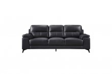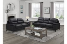 Designed for the modern home, the Mischa 3-piece Upholstery Set blends the luxurious feel of genuine leather with the comfort of sumptuous padded seating. Rich black top-grain leather covers the seat fronts while high quality faux leather-match protects the sides and back, reinforcing the overall luxe look and feel of this sleek collection. Contoured pillow-top arms, generous headrests, and high density foam-padded seat construction encourage deep relaxation, while tailored stitch detailing, exposed angled metal legs, and a contemporary profile enhance the Mischa's sense of upscale style in your living area.