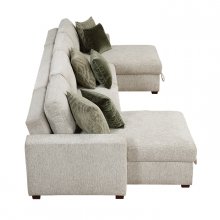 Sink into luxurious comfort and versatile style with the 3-piece reversible sectional sofa. This expansive U-shaped sectional, featuring two comfortable chaises and a spacious two-seater, is perfect for relaxing with family and friends. Upholstered in a soft, textured microfiber, this sofa offers both durability and a soft feel. The robust plywood frame and solid wood feet in an espresso finish ensure lasting stability and a touch of elegance. High-density foam padding over supportive pocket coils provides exceptional seating comfort, while the inclusion of six coordinating décor pillows enhances the overall aesthetic. The reversible configuration and reversible back and attached seat cushions offer flexibility in arranging your living space. Adding to its practicality, each chaise boasts hidden storage and a convenient drop-down back, making organization effortless.